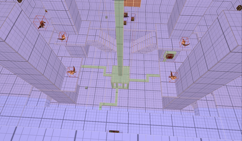 I used the scripting options offered by Trenchbroom engine to set up sequenced encounters where different groups of enemies attack the player as the fight goes on.
