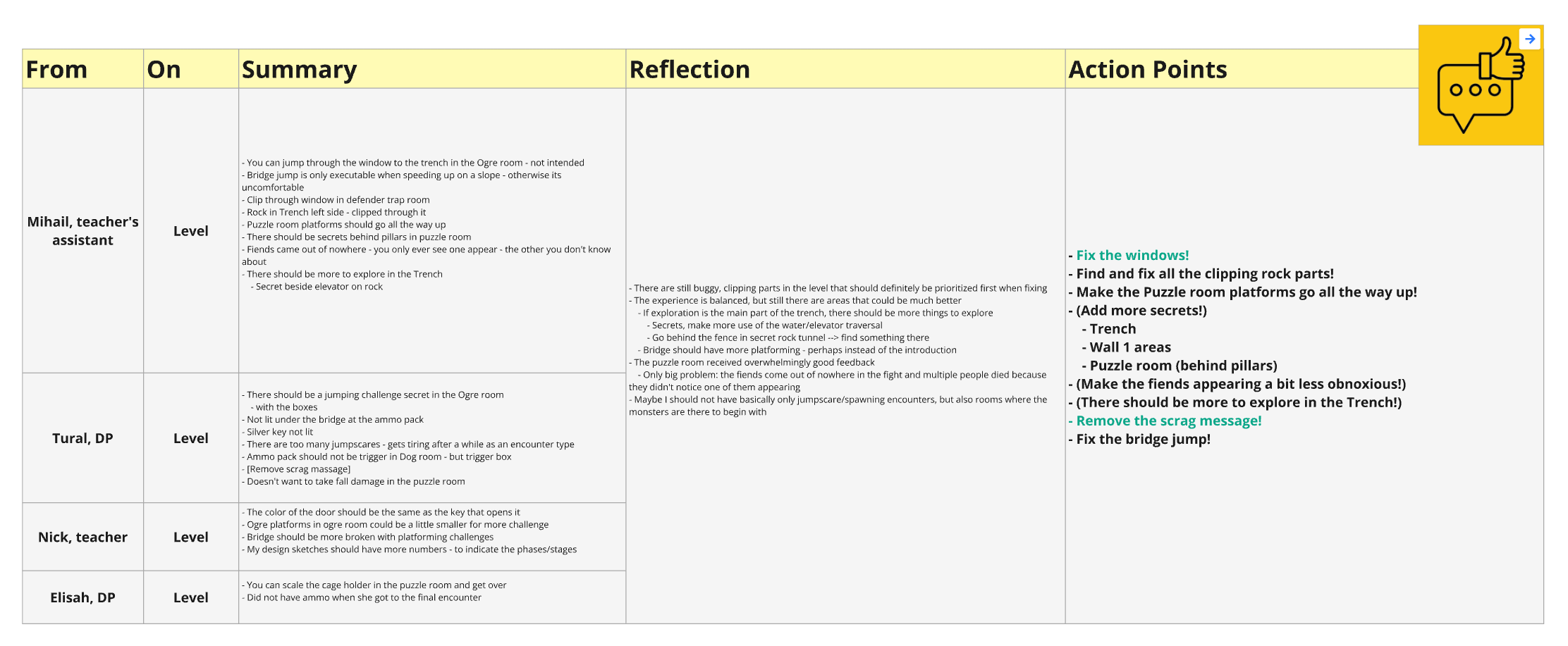 I started playtesting my level and assessing feedback from an early stage of development, following a proper QA plan: