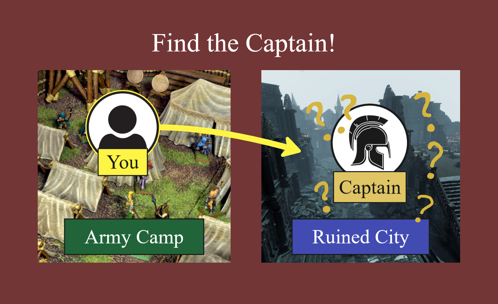You are a Prisoner of War in an army camp. The Captain of the camp has recently went into the nearby City Ruins and has not returned. You are given a chance to earn your freedom if you venture into the City and find the Captain!