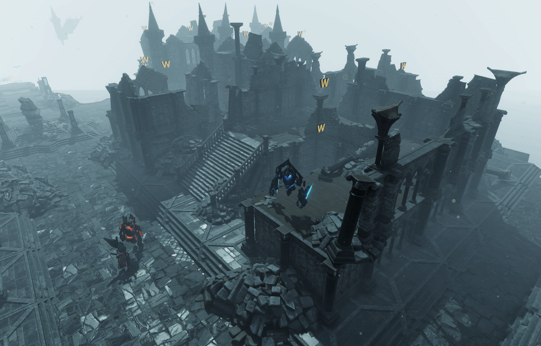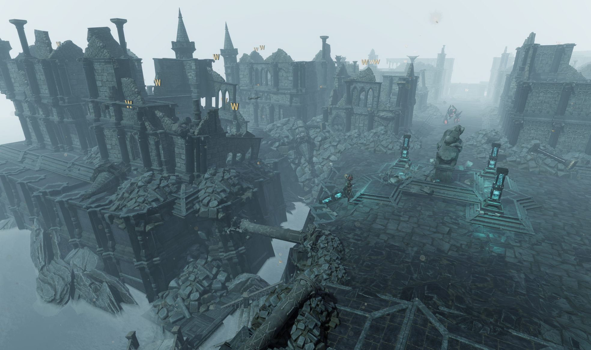 The look of the City is meant to tell the story of its downfall with the environment. Among the ruined buildings and Golems roaming the streets can be seen a City once brimming with life and technology, creating gloomy and tragic feeling.